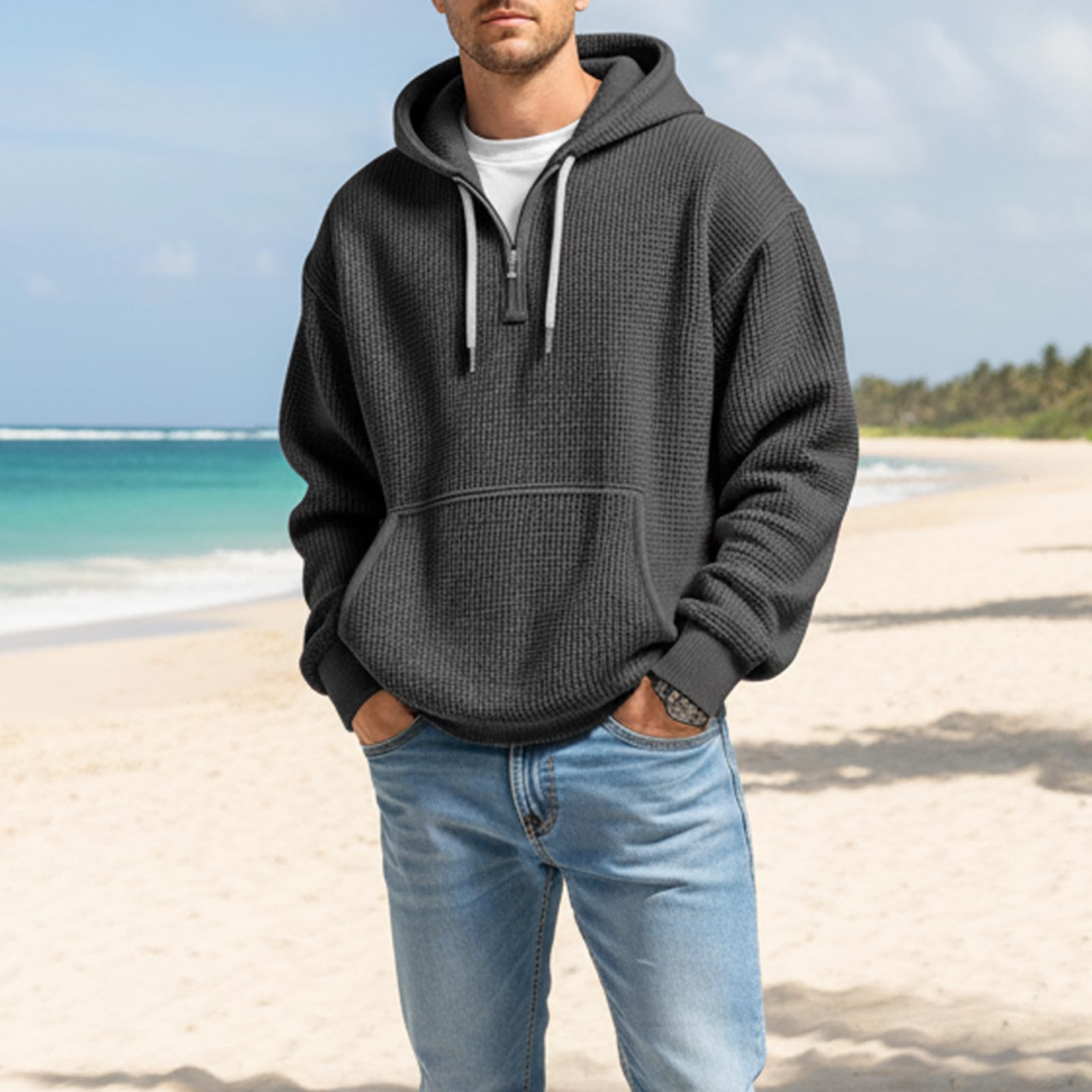 Men's Casual Solid Color Waffle Zipper Long Sleeve Hooded Sweatshirt