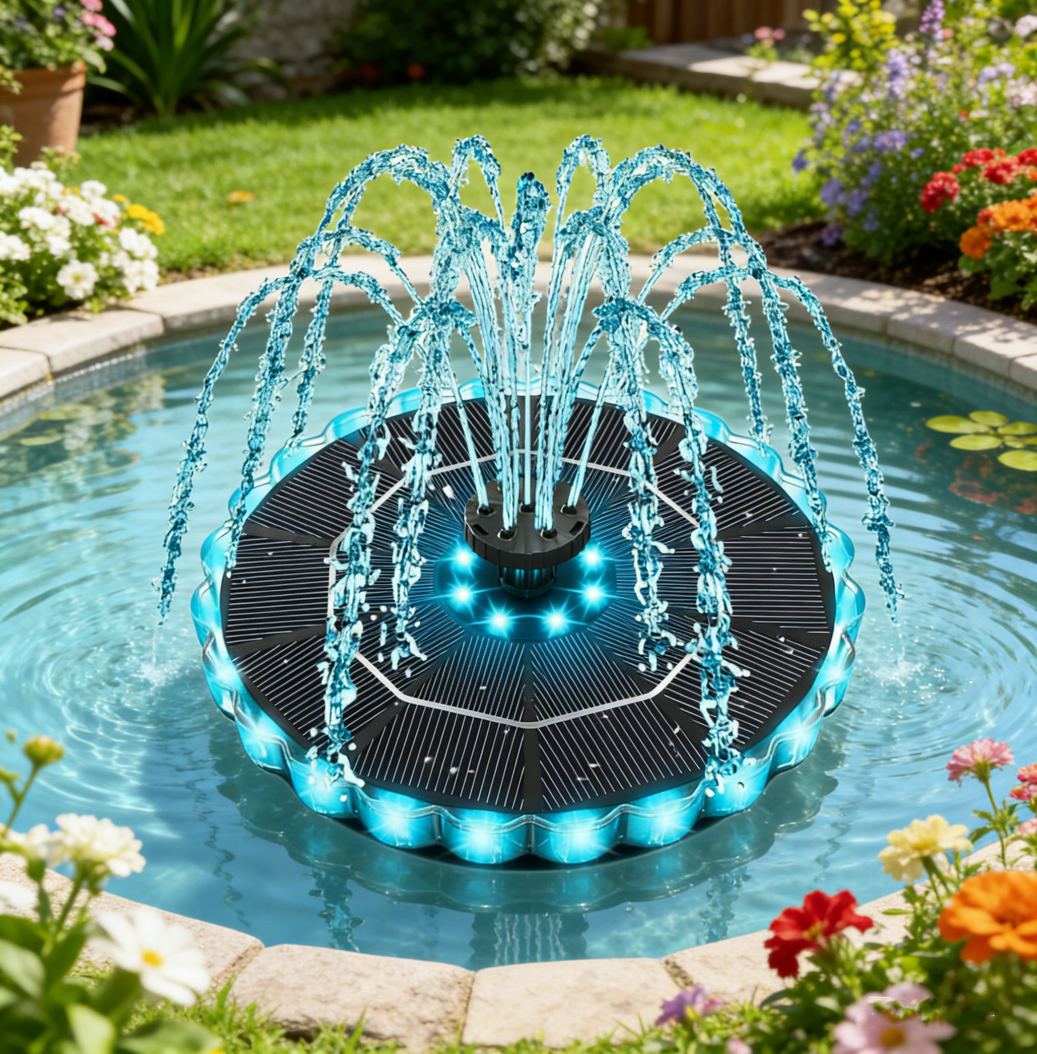 Solar Fountain Colorful Ring Lights