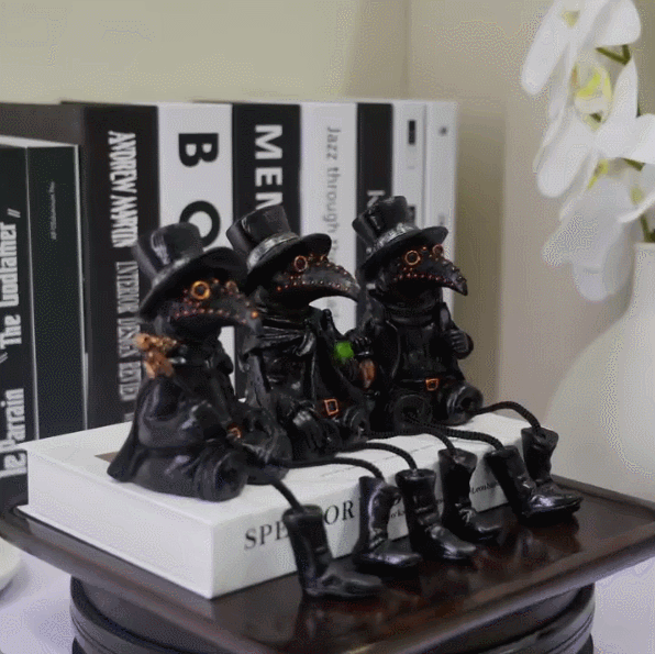 Made from durable resin, these plague doctor figurines are built to last. Their good-quality craftsmanship and fine detailing ensure they look stunning and hold up well, making them a durable addition to your seasonal decor collection, These plague doctor figurines are ideal for placing on tables, fireplaces, shelves, or mantels. Their sitting design and dangling legs make them versatile and easy to position in a variety of settings.