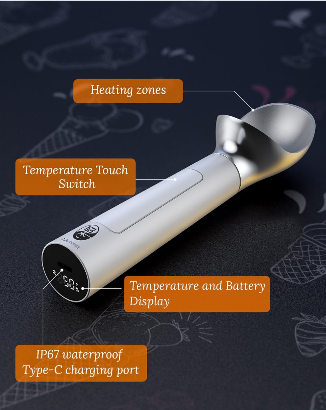 【Dustproof and waterproof design】: lP67 compliant,The heated ice cream scoop's smooth surface and construction make it a breeze toclean and maintain