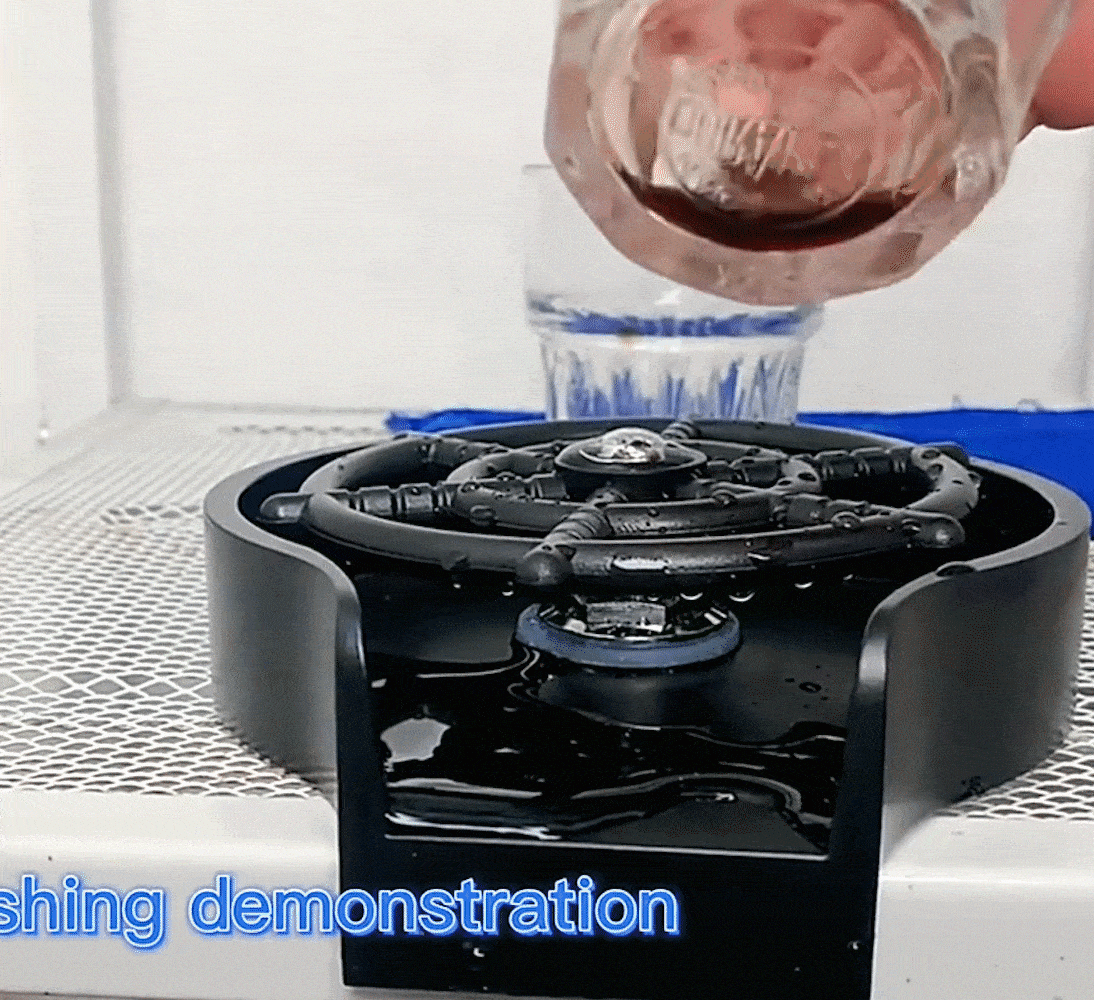 Generally the pressure of tap water can be used for cleaning. Put the mouth of the cup downward and press the bottom of the cup lightly and automatically spray water for cleaning. When the cup is cleaned, remove the cup and stop spraying water, the cleaning is completed.