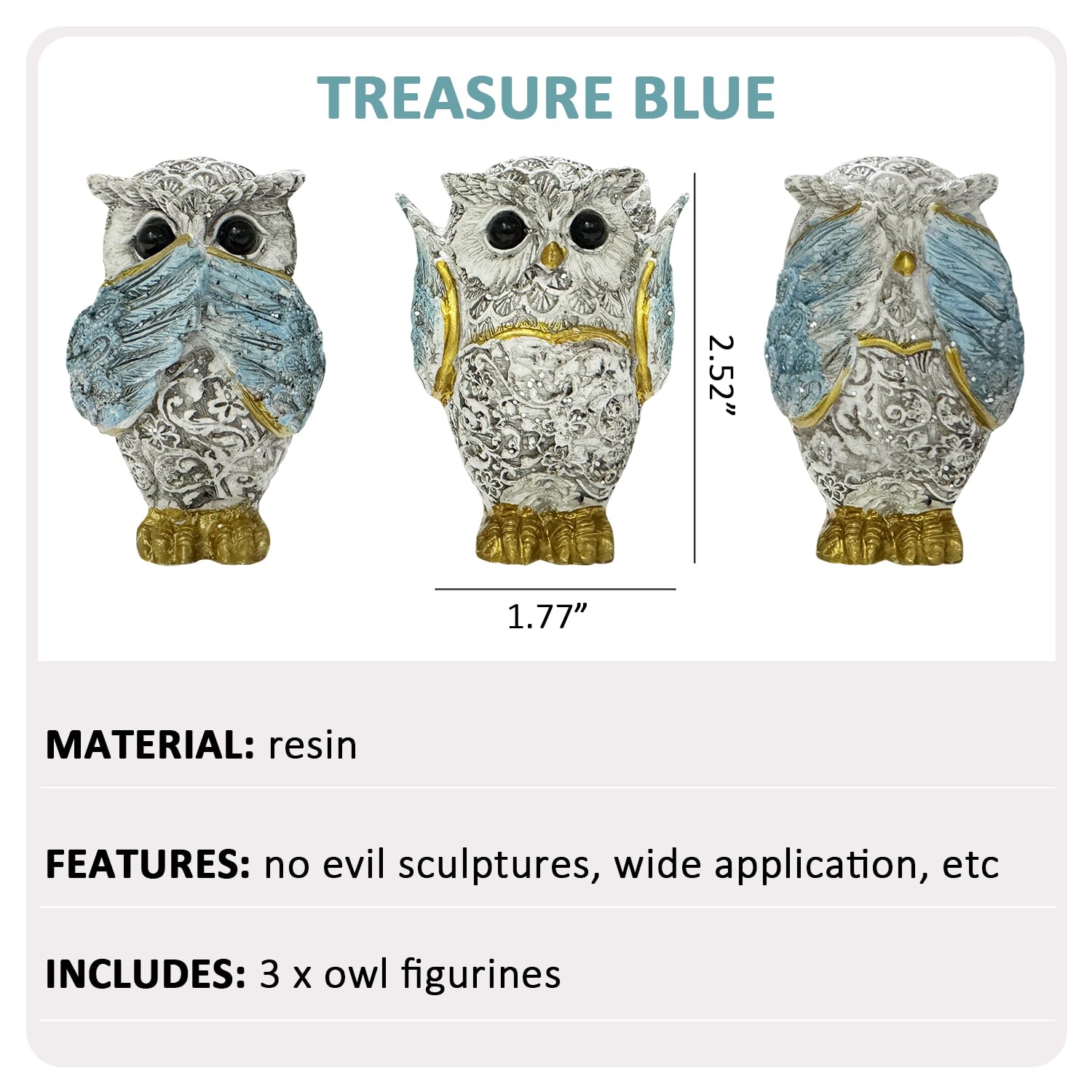 This three - piece set of owl figurines is designed with the classic concept of "hear no evil, speak no evil, see no evil". Endowed with profound meaning, it injects cultural richness and an artistic touch into homes and offices. Whether adorning bookshelves, cabinets, or desks, it unfailingly commands attention.
