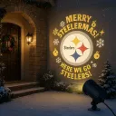 Festive Projection: Projects large, vibrant patterns including team logos, snowflakes, ornaments, and holiday greetings.