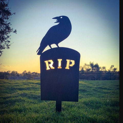 Evil Halloween Happy Spooky Raven on Grave Metal Black Yard Art Decoration