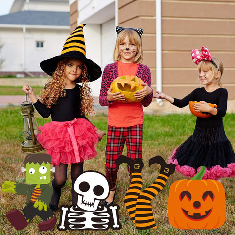How to decorate halloween yard signs?simply insert two stakes into each halloween sign and press into the ground to display. or you can put them on wall,window,table by double-sided tape(not included).both adults and kids friendly cute holiday outdoor decorations, holiday party supplies.