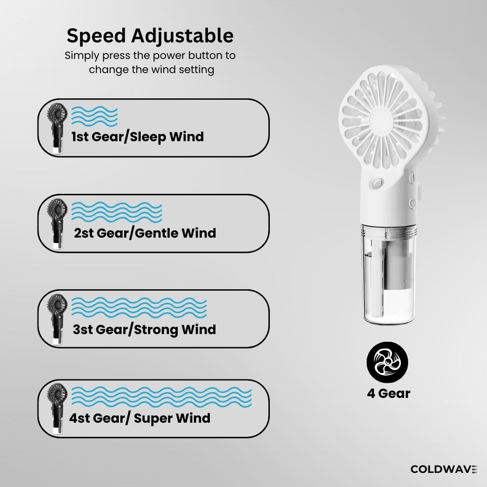 Four Gears: Choose from four different fan speed settings to customize your cooling experience. Whether you prefer a gentle breeze or stronger airflow, our portable fan provides flexible options to meet your personal comfort needs.