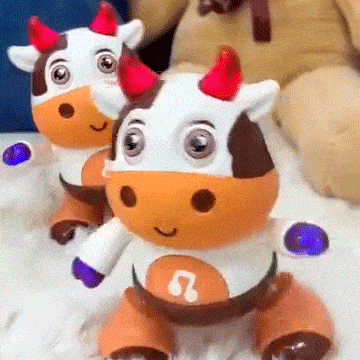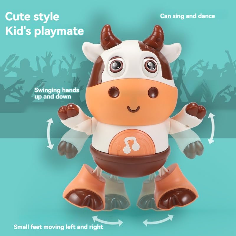 【Dancing Walking Baby Cow Toy】 Dancing cow toy can move turn and left, and the arms swings up and down, even can even blink when moving. There are 2 modes for choose. You can choose the cattle to glow in a static state or dance to music and lights.