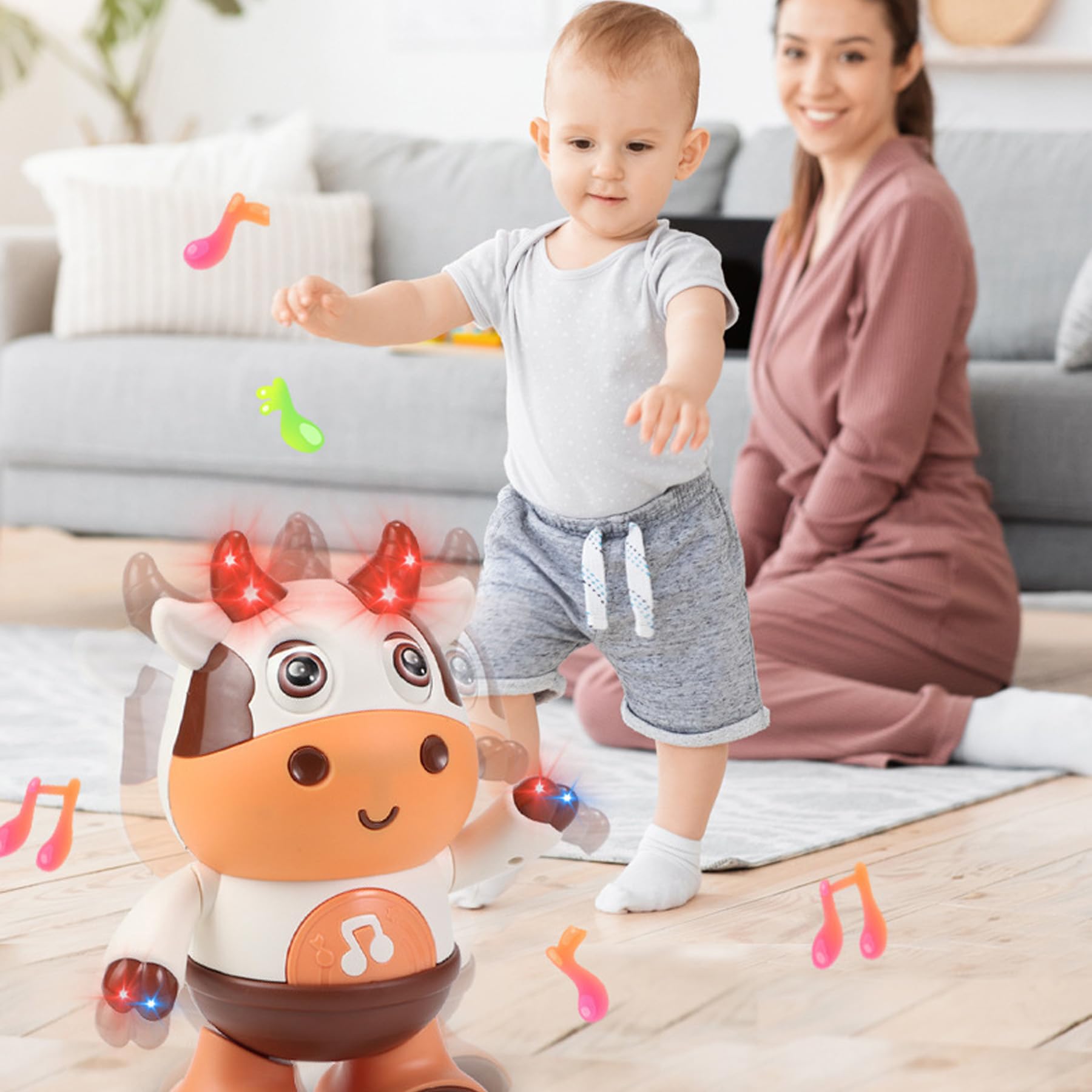 【Educational toys】 The colorful lights of baby cow toy attract children's attention in the shortest time, and the rich body movements and sounds can greatly arouse children's curiosity. It's available for kids dance together to the cool lights and music.