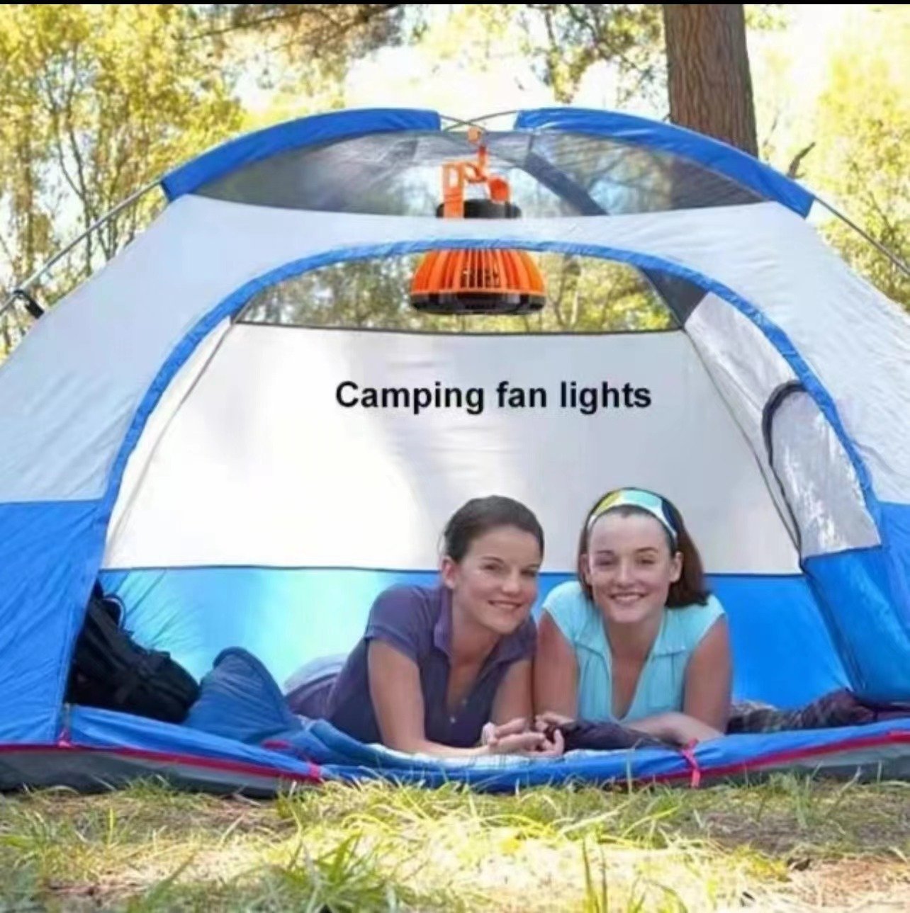 This portable USB fan combines a tent fan, a camping lantern, and an emergency power bank 3 in 1, which can help you keep cool in a hot tent and enjoy unrestrained outdoor activities at night.