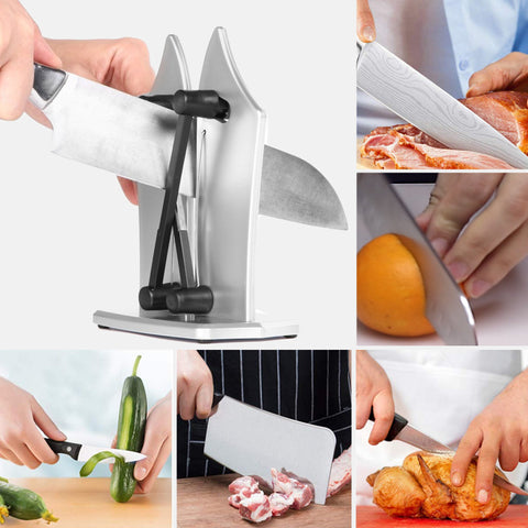 Slice and cut like your blades did on the first day - Other static grinders work by requiring you to apply pressure. It removes a lot of steel from the blade every time you sharpen the knife. They literally grind away at the blade until there's nothing left... The Knife Sharpener requires no pressure. You just gently push it through the blade. It is designed to sharpen your knives without damage.