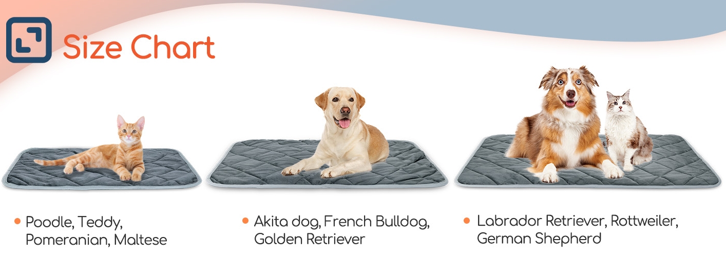 PORTABLE AND CONVENIENT: Dog mats for sleeping size 35"x 23" and are perfect for small and medium dogs such as French Bulldog and Golden Retriever, etc. After folding, the chew-proof dog crate pad measures only 11.6"x 9.5". The convenient and lightweight design makes it ideal for transportation or travel, so your pet stays comfortable and warm wherever you go! (Please measure your pet to ensure size before ordering.)