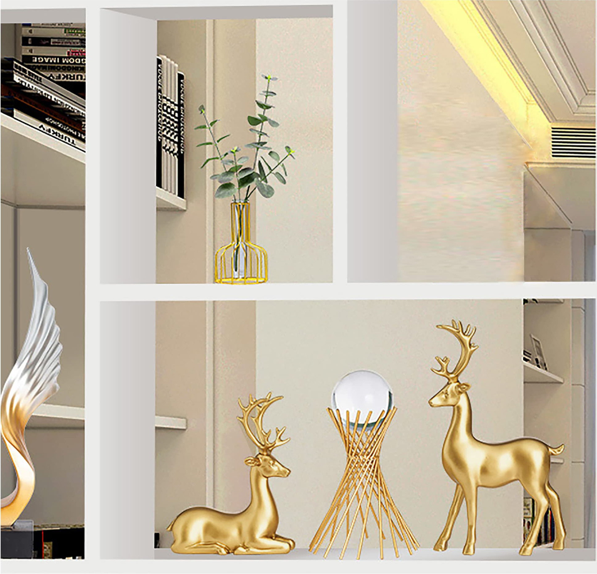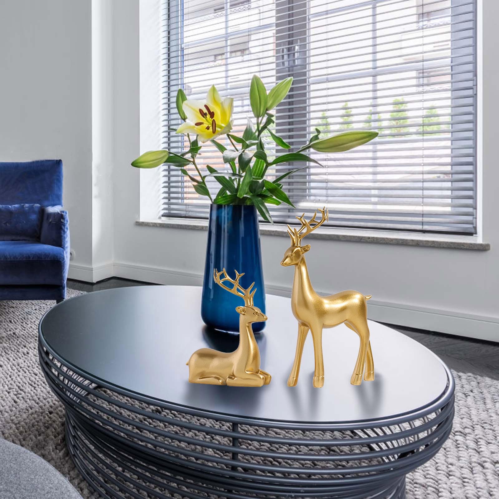Always in Seasons: Delicate Couple Golden Elk Statues will not only look gorgeous in winter Christmas season; also eye-catching golden decorations for all seasons to create a classy, homey and artistic atmosphere, easy to be the centerpiece of a room.